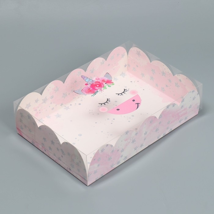 Коробка для печенья, кондитерская упаковка с PVC крышкой, «Чудесных мгновений», 20 х 30 х 8 см