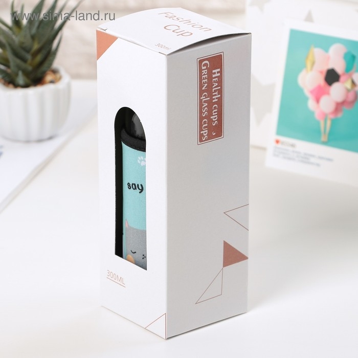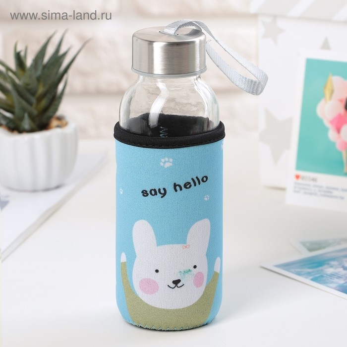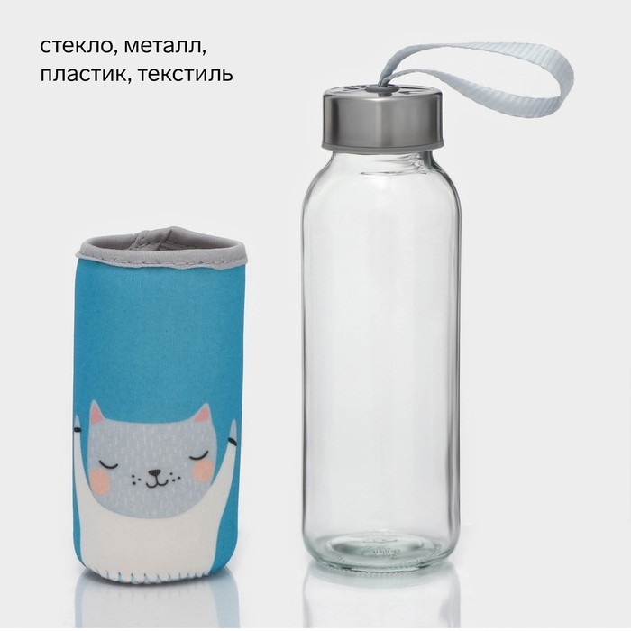 Бутылка для воды стеклянная в чехле «Милые животные», 300 мл, h=17 см, рисунок МИКС