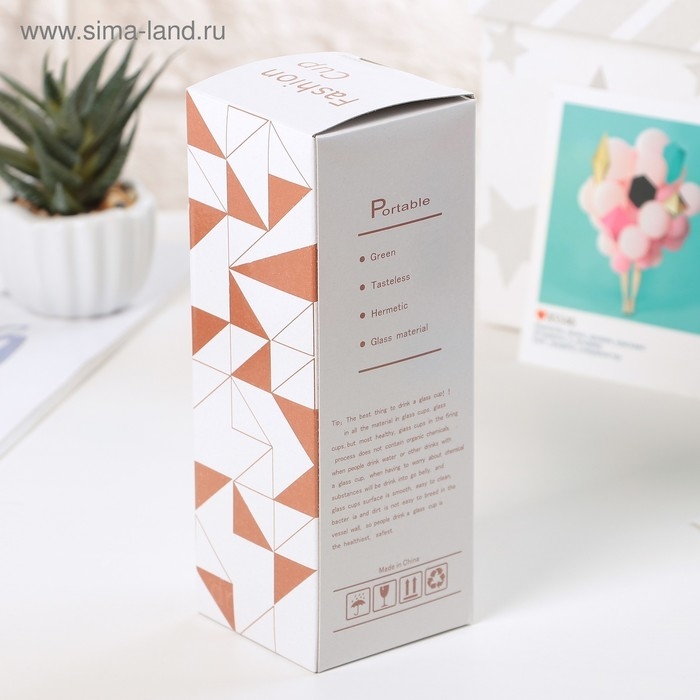Бутылка для воды стеклянная «Кактус», 420 мл, h=19,5 см, цвет и рисунок МИКС