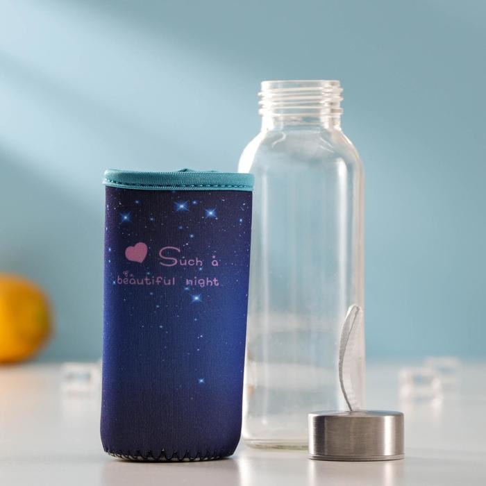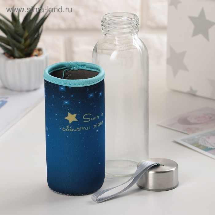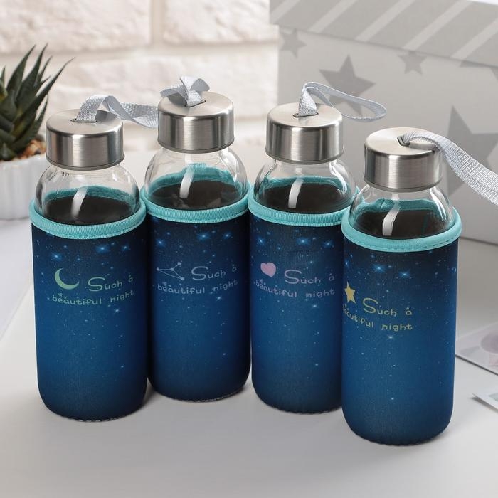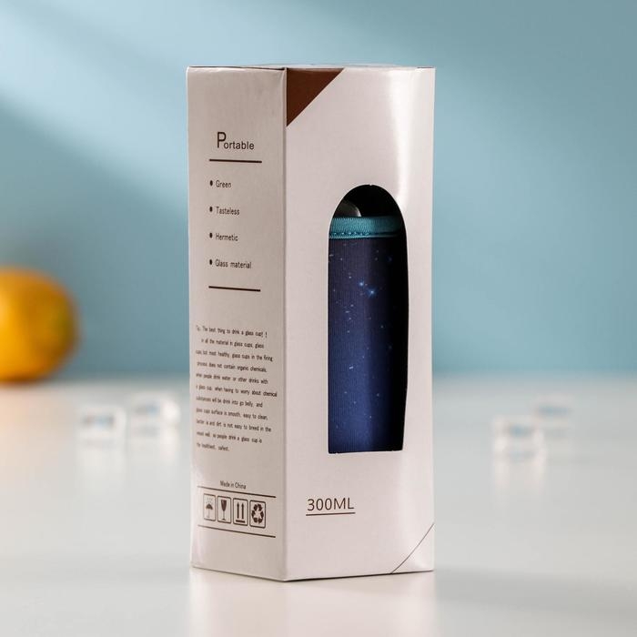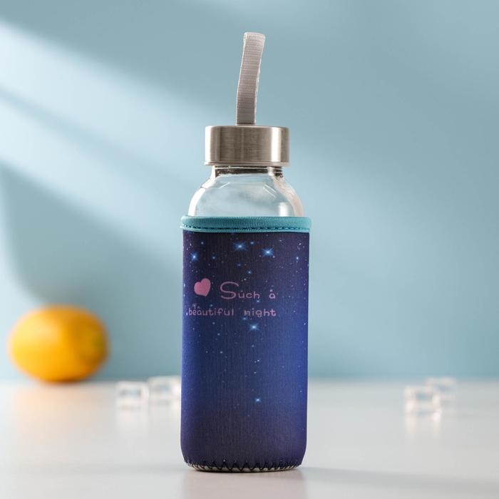 Бутылка для воды стеклянная в чехле «Звёздное небо», 300 мл, h=17 см, цвет МИКС