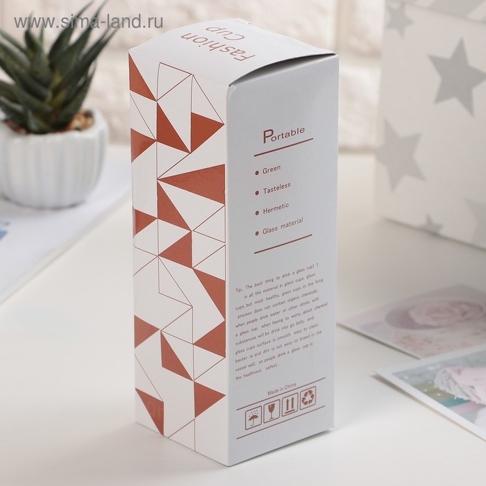 Бутылка для воды стеклянная в чехле «Идея», 300 мл, h=17,5 см, рисунок МИКС