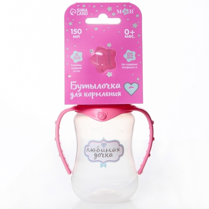 Бутылочка для кормления «Любимая доченька», классическое горло, приталенная, с ручками, 150 мл., от 0 мес., цвет розовый