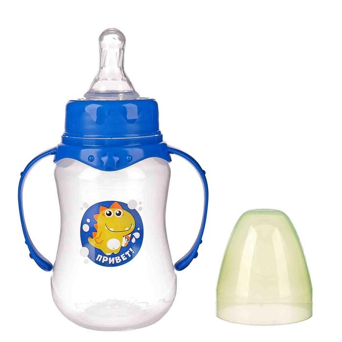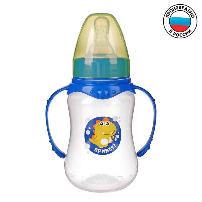 Бутылочка для кормления «Динозаврик Рикки», классическое горло, с ручками, 150 мл., от 0 мес., цвет синий