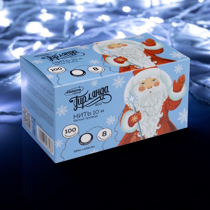 Гирлянда «Нить» 10 м, IP20, белая нить, 100 LED, свечение белое, 8 режимов, 220 В
