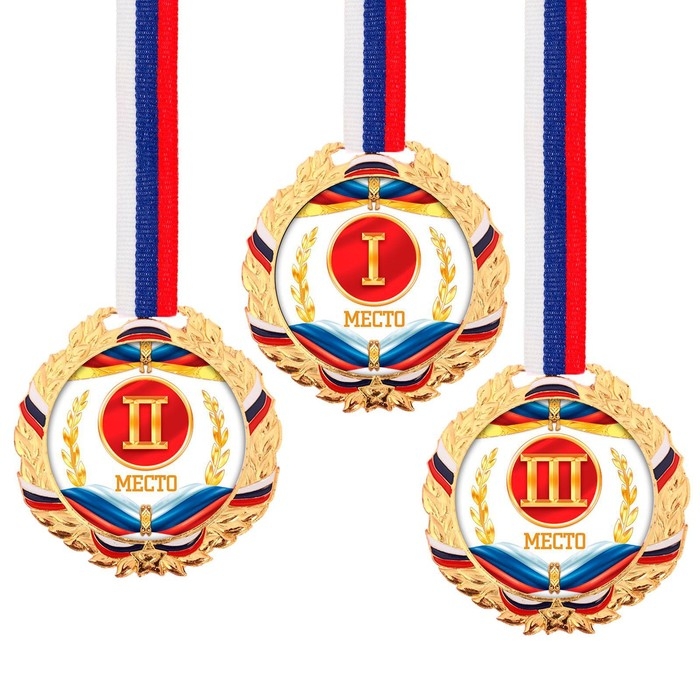 Медаль призовая 013, d= 5 см. 1 место, триколор. Цвет золото. С лентой