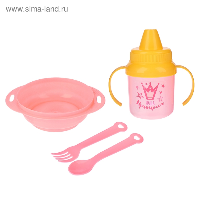 Набор детской посуды «Наша принцесса», 4 предмета: тарелка, поильник, ложка, вилка, от 5 мес.