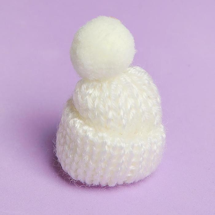 Шапка для игрушек вязаная с помпоном, набор 5 шт., цвет белый