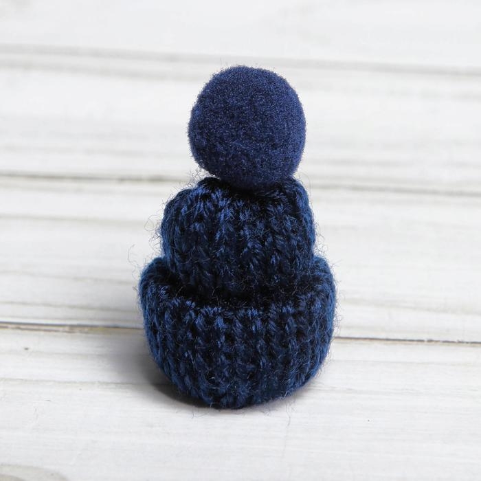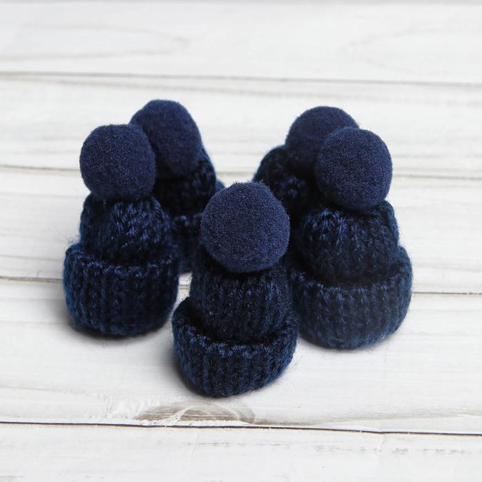 Шапка для игрушек вязаная с помпоном, набор 5 шт., цвет синий