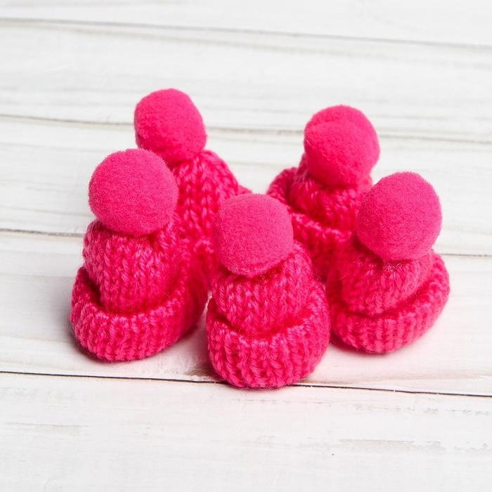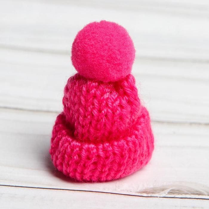 Шапка для игрушек вязаная с помпоном, набор 5 шт., цвет розовый