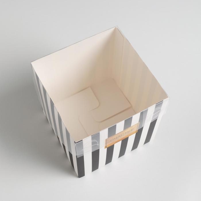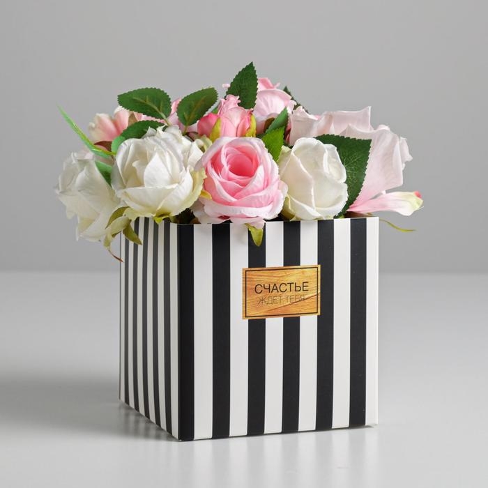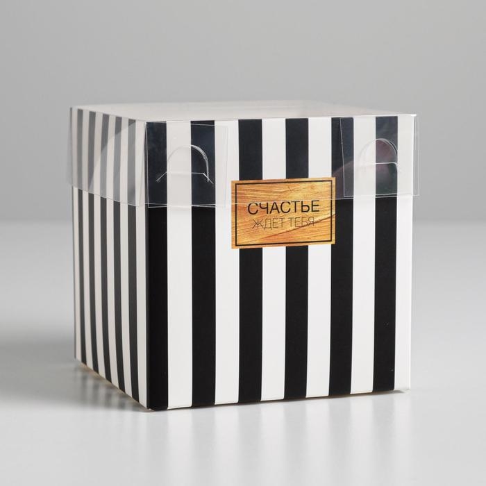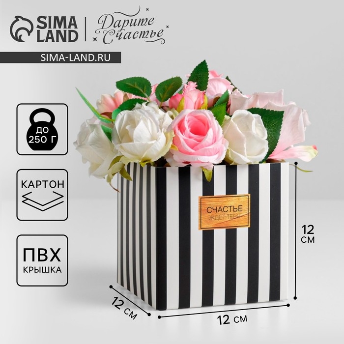 Коробка подарочная для цветов с PVC крышкой, упаковка, «Счастье ждёт тебя», 12 х 12 х 12 см