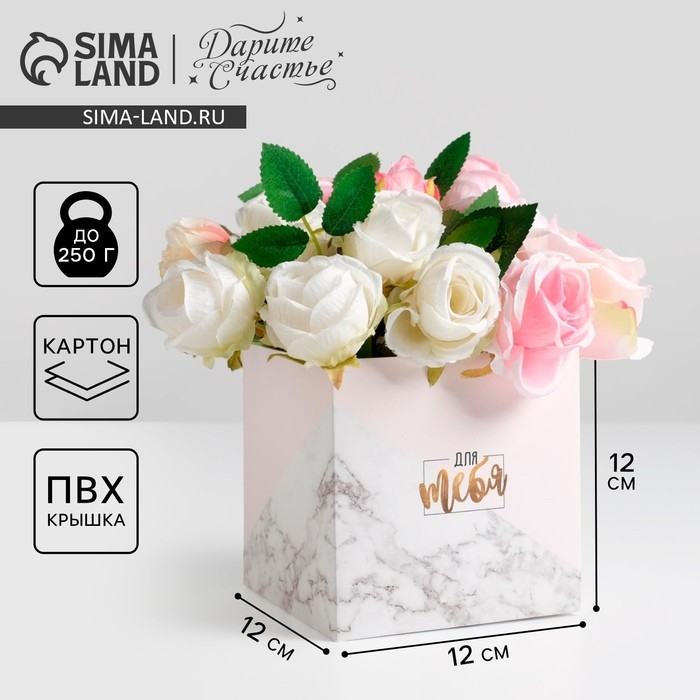 Коробка подарочная для цветов с PVC крышкой, упаковка, «Для тебя», 12 х 12 х 12 см