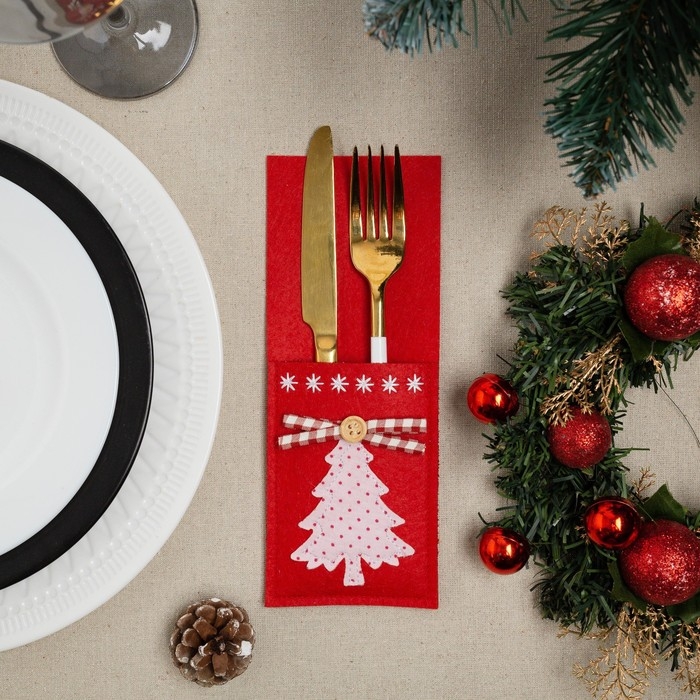 Конверт для столовых приборов «Елочка» 8,5х21 см, 100% п/э, фетр