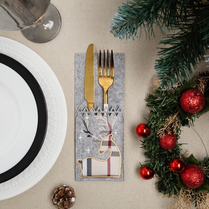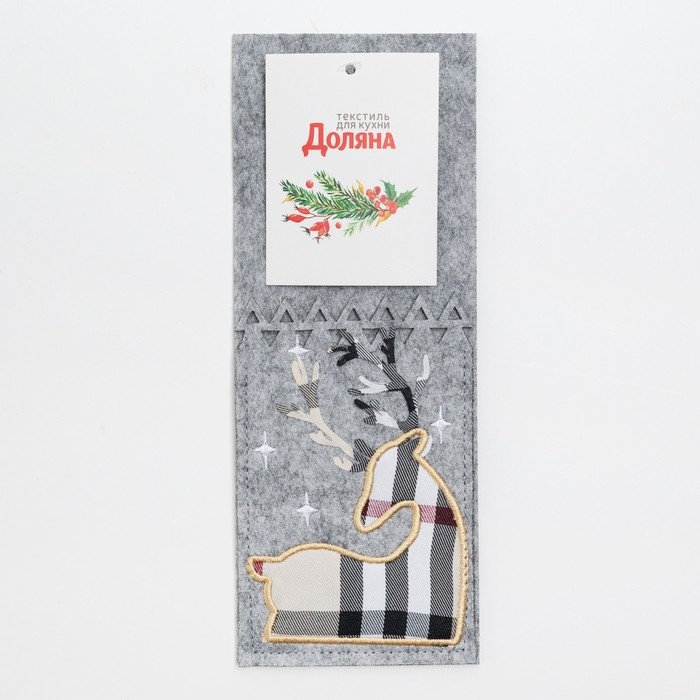 Конверт для столовых приборов «Олень» 8,5х21 см, 100% п/э, фетр