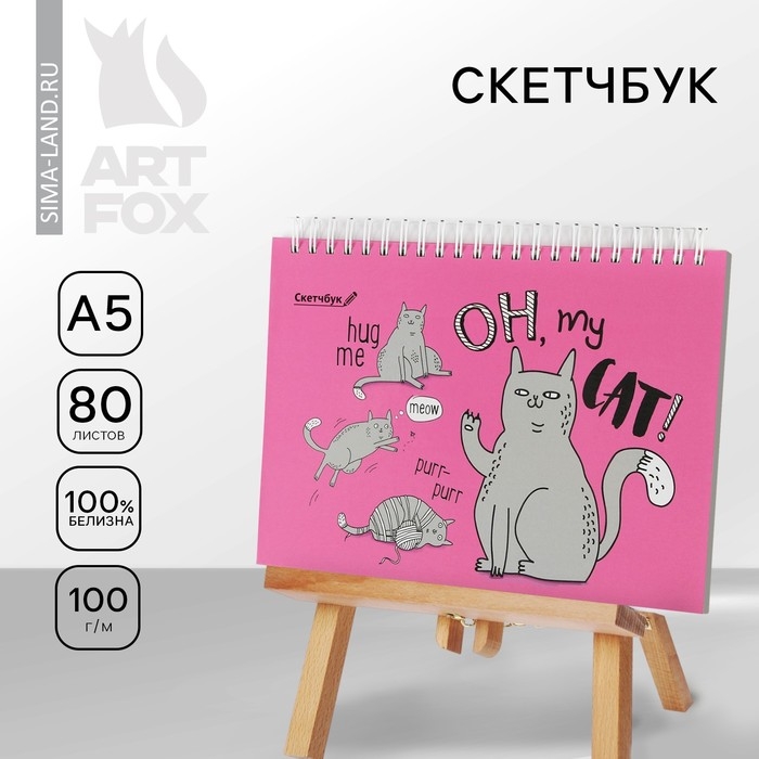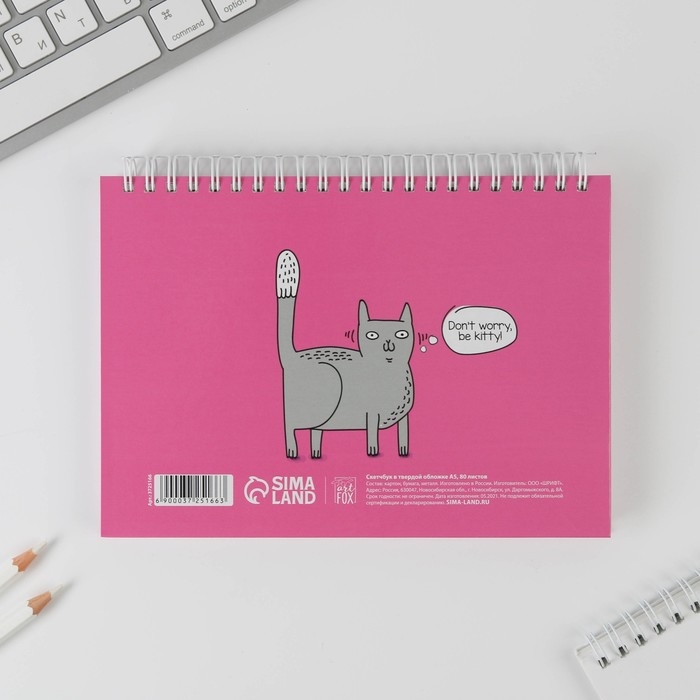 Скетчбук в твердой обложке на гребне CAT А5, 80 л, 100 г/м