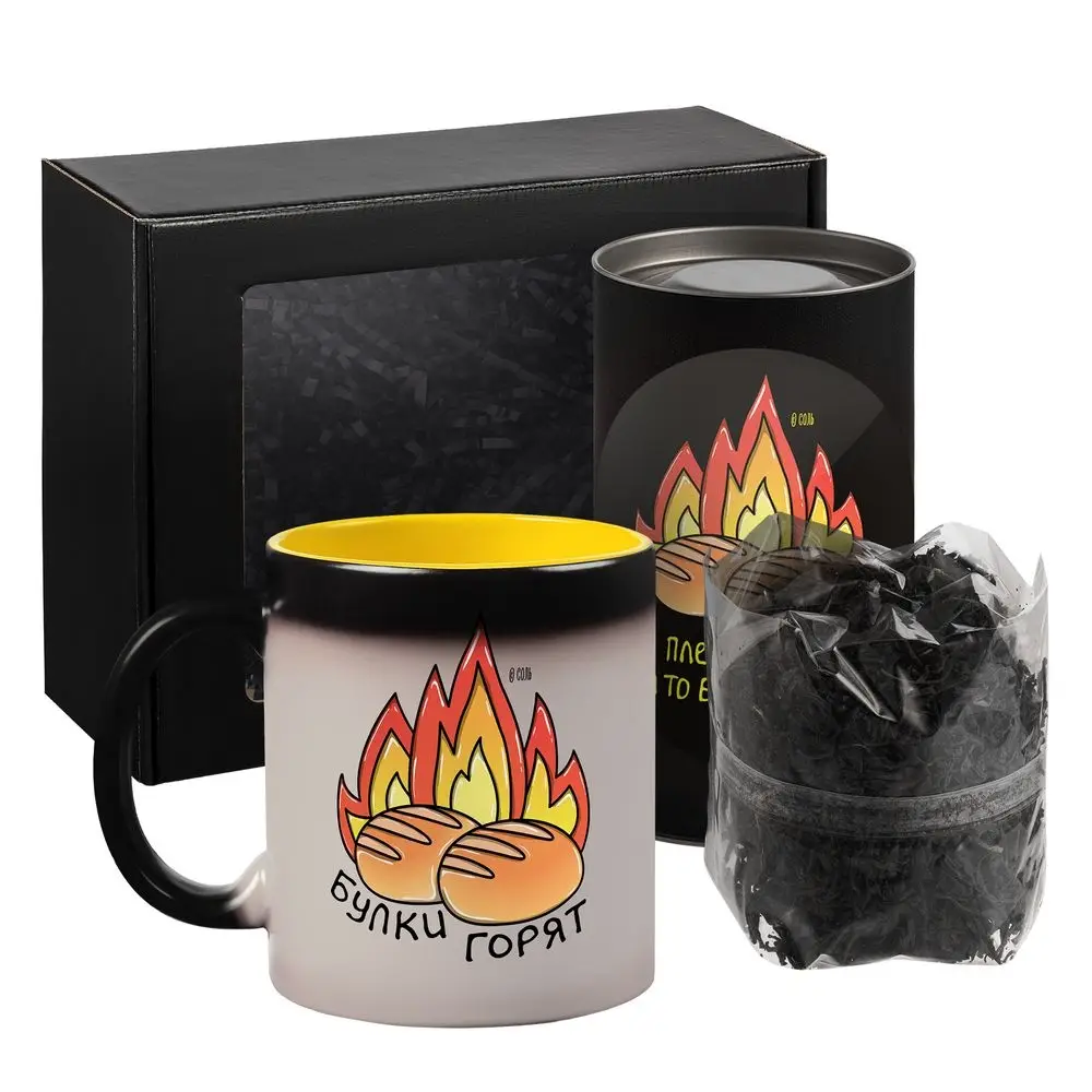 Набор-напоминание: когда работа начинает закипать, самое время вскипятить чайник. Горячая вода полноценно раскроет аромат чая и проявит рисунок на кружке-хамелеоне. Благодаря такому эффекту станет ясно, что человека, который сейчас наслаждается перерывом лучше не тревожить — у него и так «булки горят»!Не рекомендуется мыть кружку в посудомоечной машине и использовать в микроволновой печи.