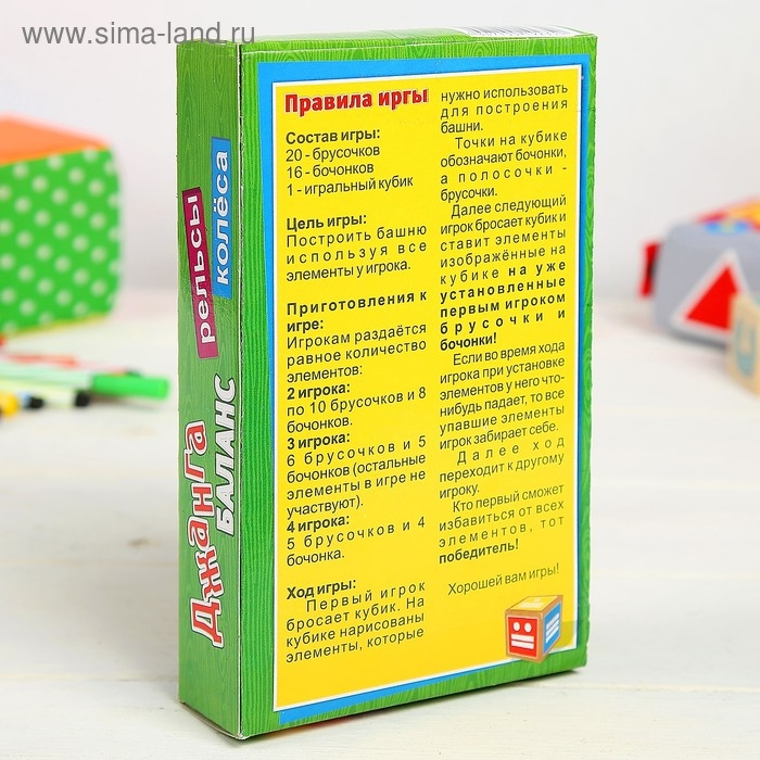 Первый игрок бросает кубик. На кубике нарисованы элементы, которые нужно использовать для построения башни. Точки на кубике обозначают бочонки, а полоски - брусочки. Далее следующий игрок бросает кубик и ставит элементы, изображенные на кубике, на уже установленные первым игроком брусочки и бочонки. Если во время хода игрока при установке элементов у него что-нибудь падает, то все упавшие элементы игрок забирает себе. Далее ход переходит к другому игроку. Кто первый избавится от всех элеметов, тот победитель!