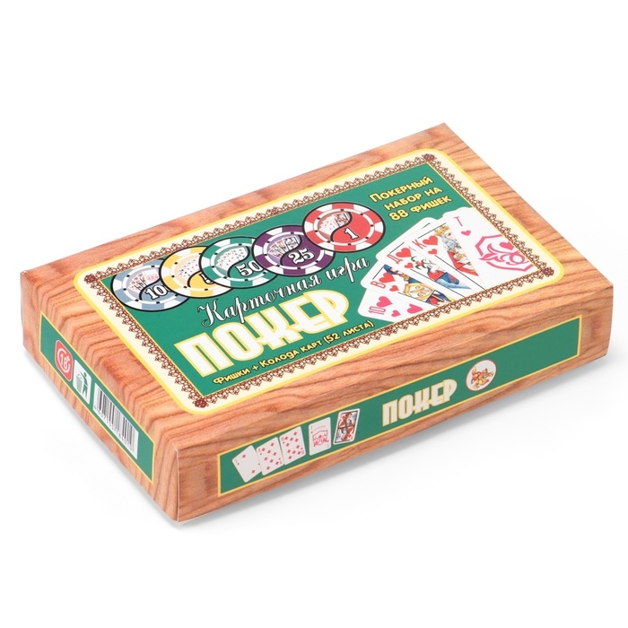 Покер, набор для игры, карты 52 л, фишки 88 шт
