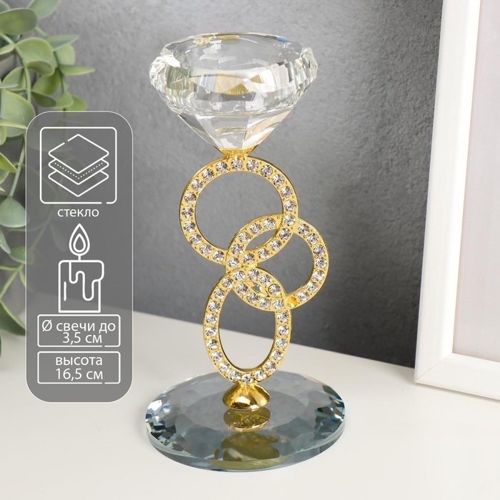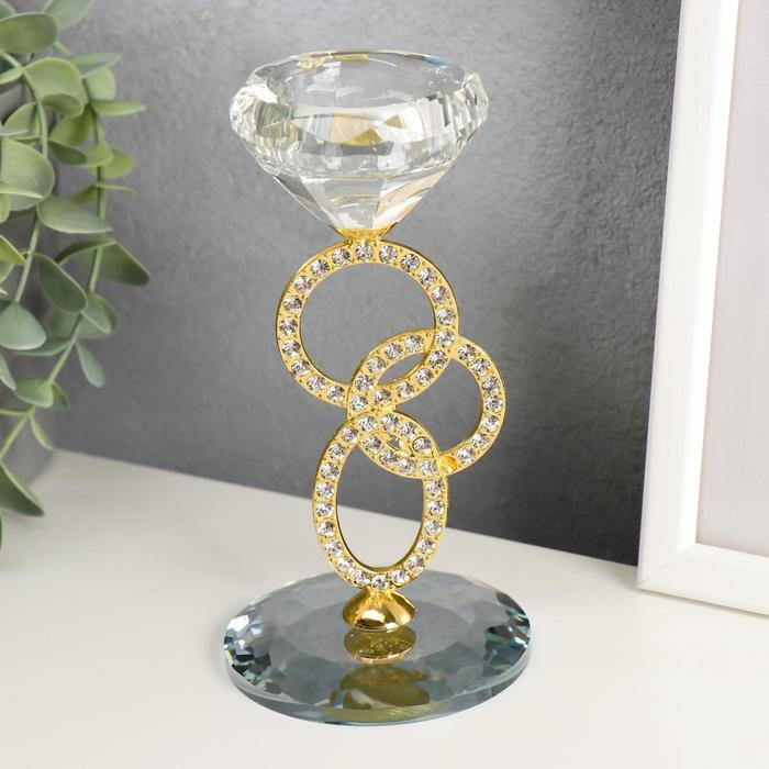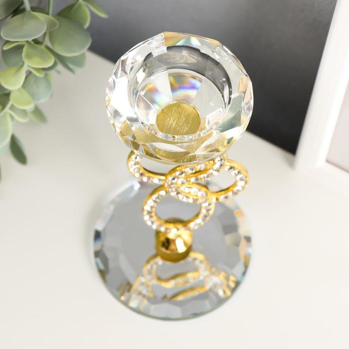 Подсвечник стекло на 1 свечу "Сплетение колец" стразы золото 16,5х8х8 см