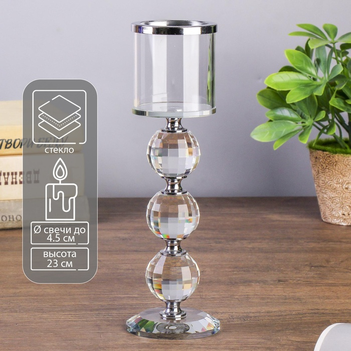 Подсвечник стекло на 1 свечу "Чёрная дымка" 23х7х7 см