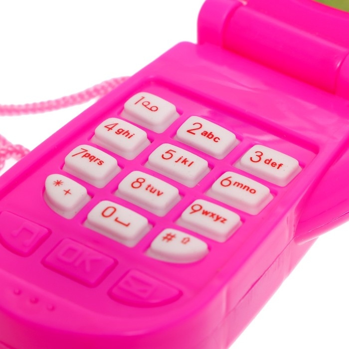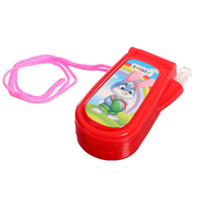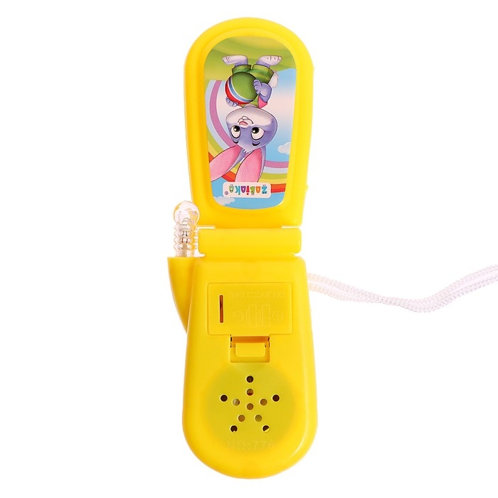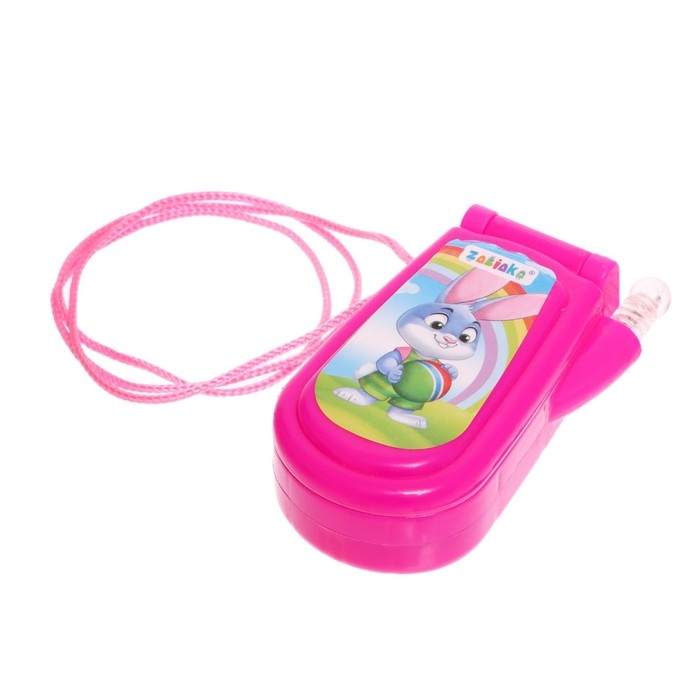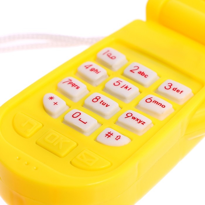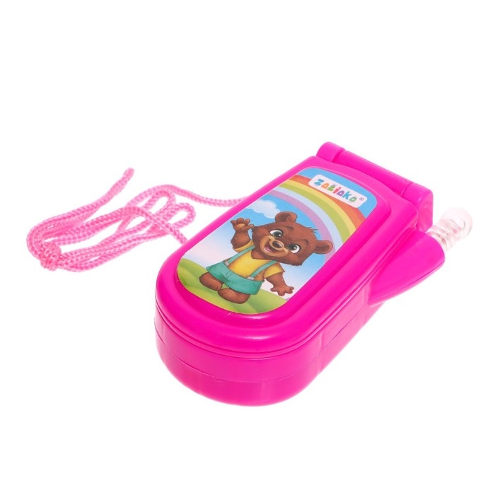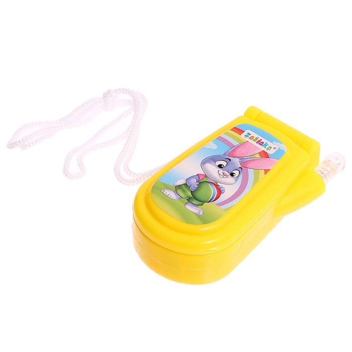 Яркий огонёк и картинки привлекут внимание ребёнка. Телефончик можно носить на шее. Есть верёвочка.