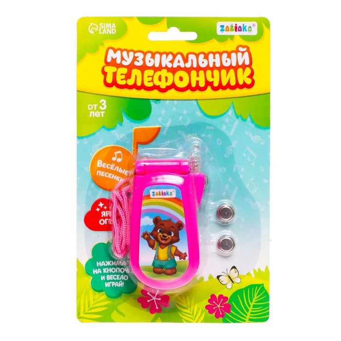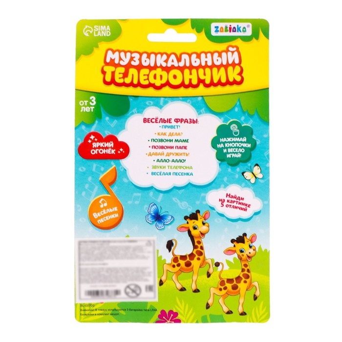 Музыкальный телефон «Зверюшки», русская озвучка, световые эффекты, работает от батареек, МИКС