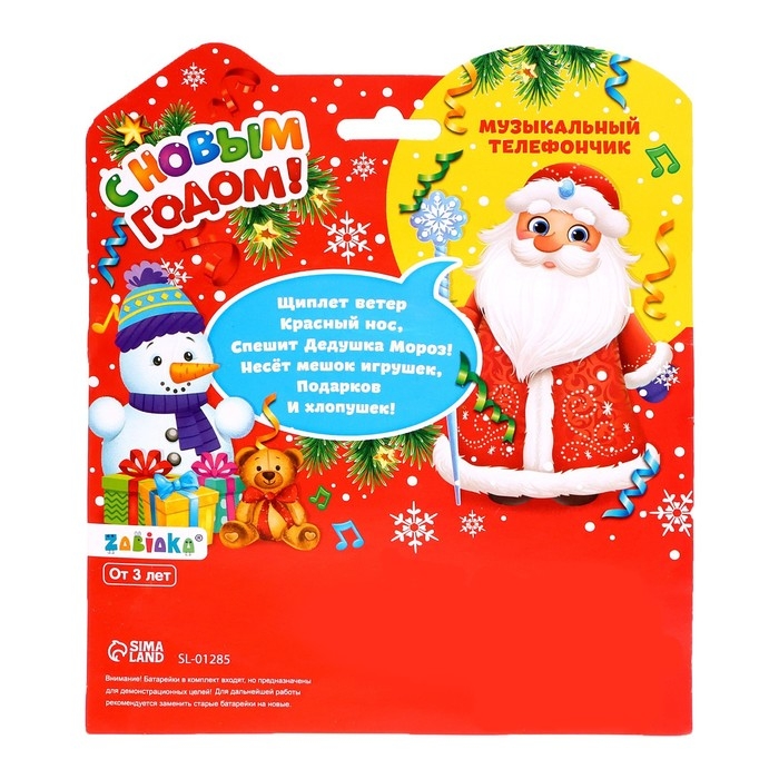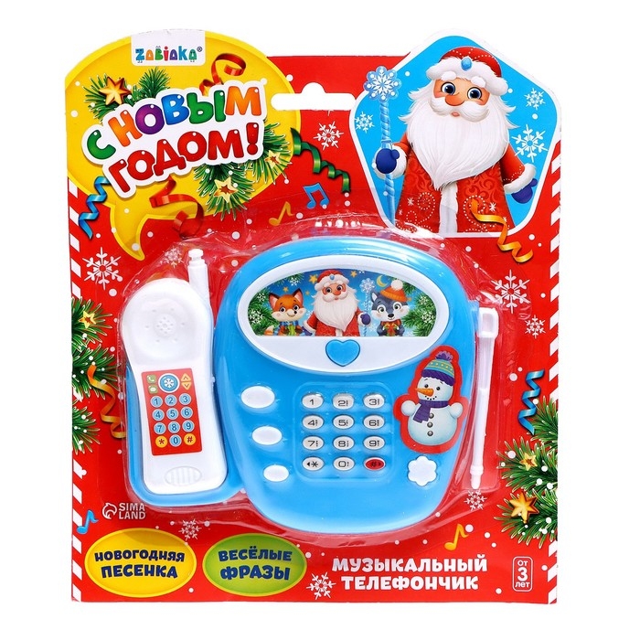 Музыкальный телефон стационарный «С Новым годом», русская озвучка, работает от батареек