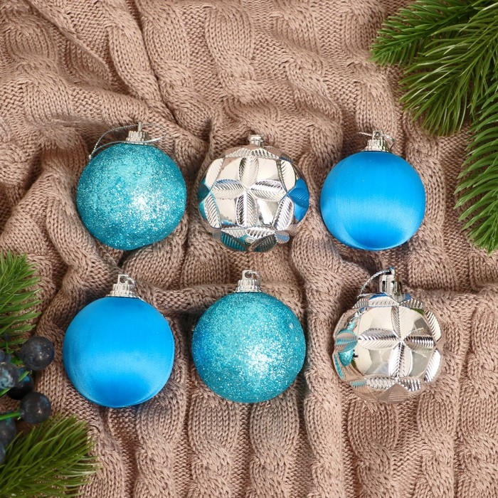 Набор шаров пластик d-4,5 см, 6 шт "Лаура" серебристо-голубой