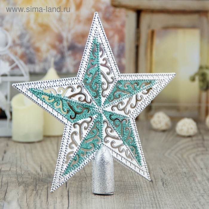 Наконечник "Звезда" завитушки, 19х18,5 см, серебристо-зелёный