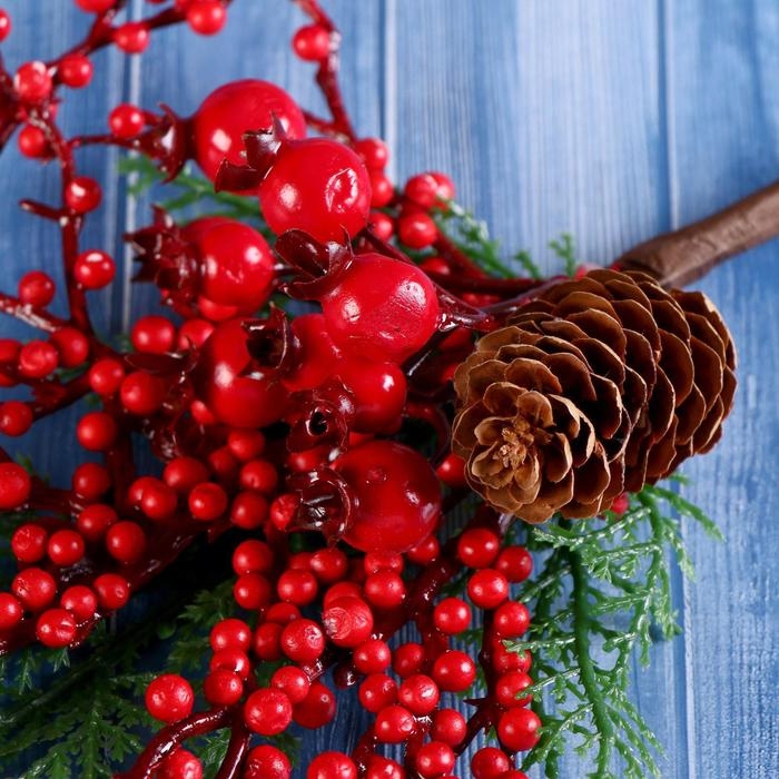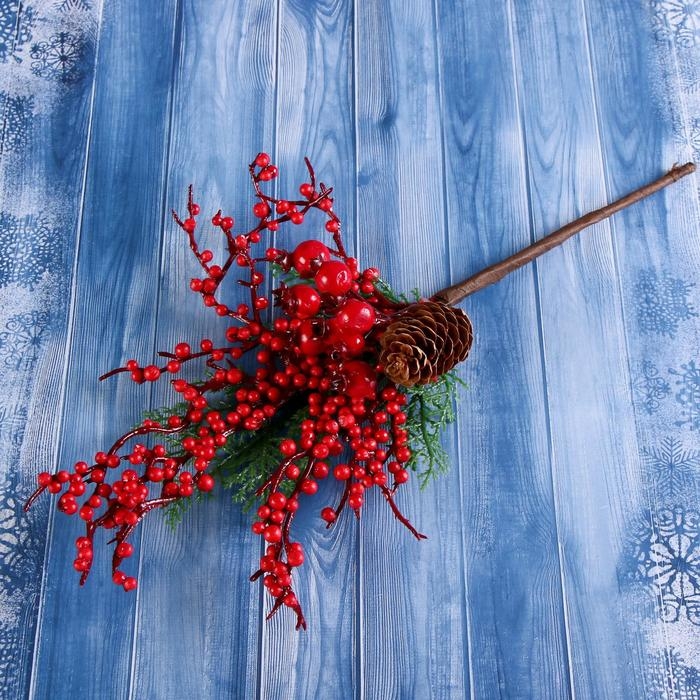 Декор "Зимние мечты" ягодная веточка с шишкой, 30 см