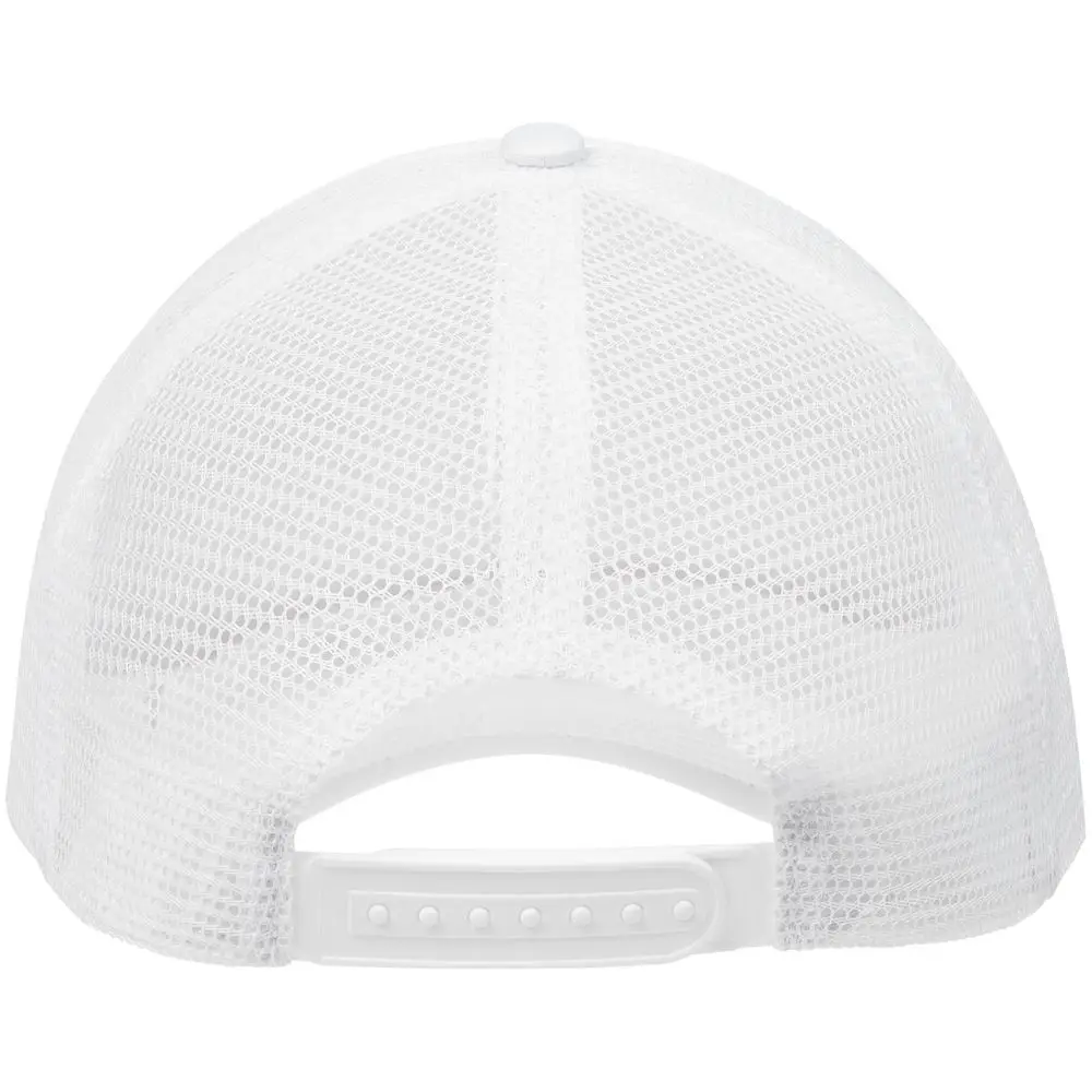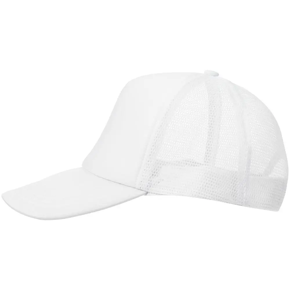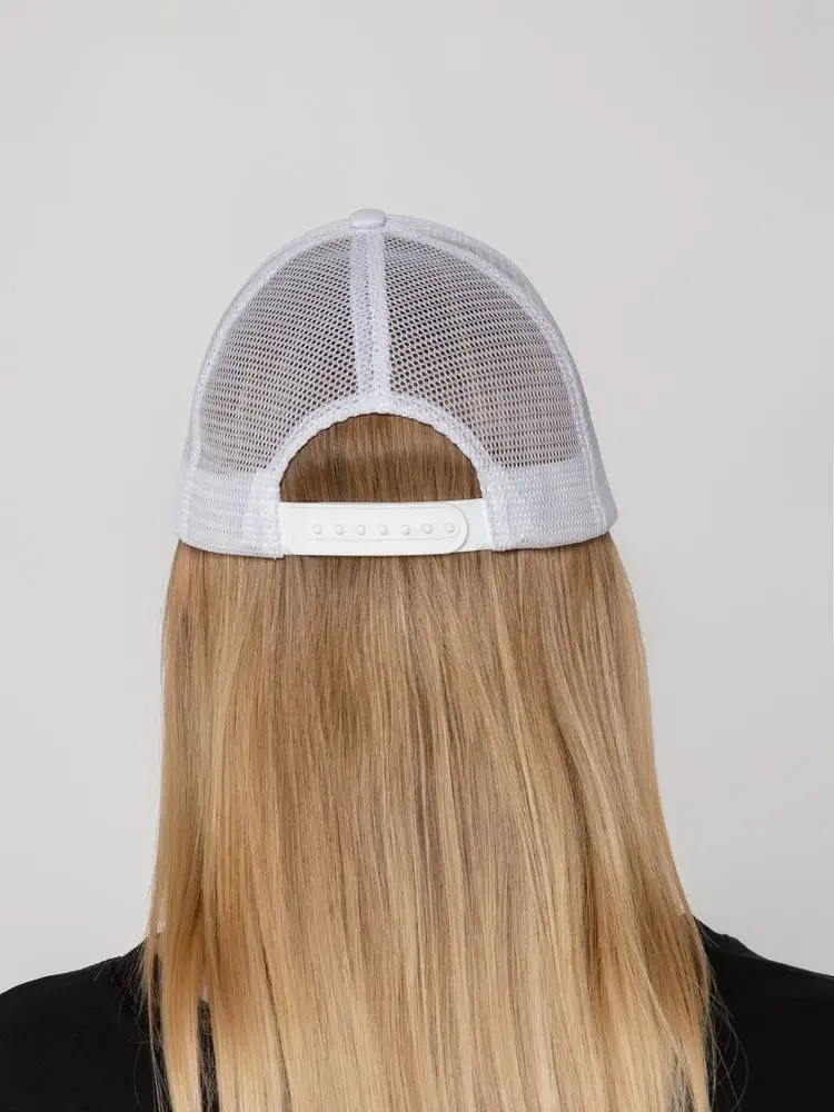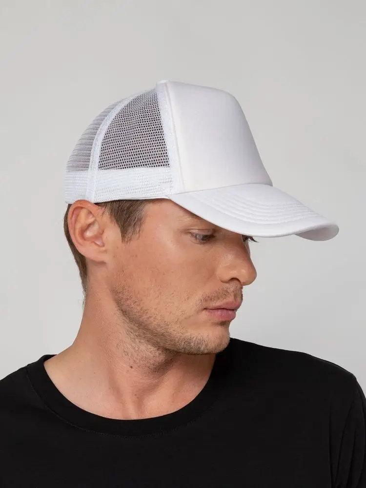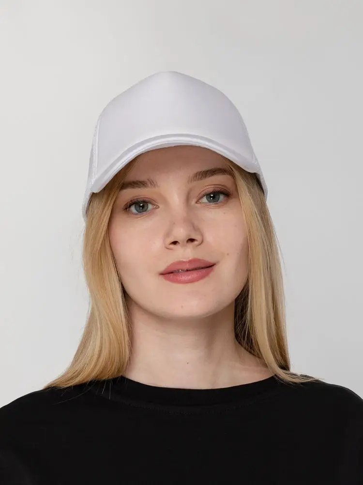 Стандартная модель с 5 клиньями без лобового шва в нестандартном исполнении. Передний клин и козырек выполнены из полиэстера с наполнителем из поролона, боковые и задние клинья — из сетки. Размер регулируется с помощью пластиковой застежки.