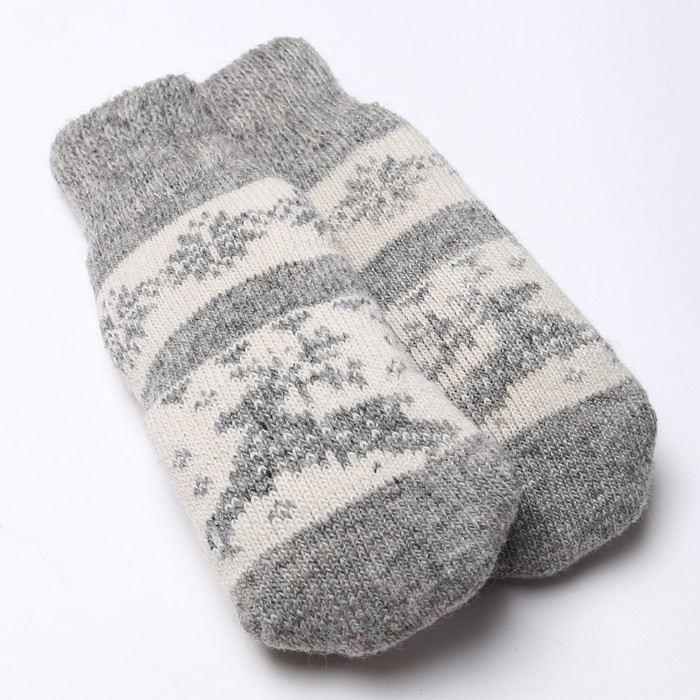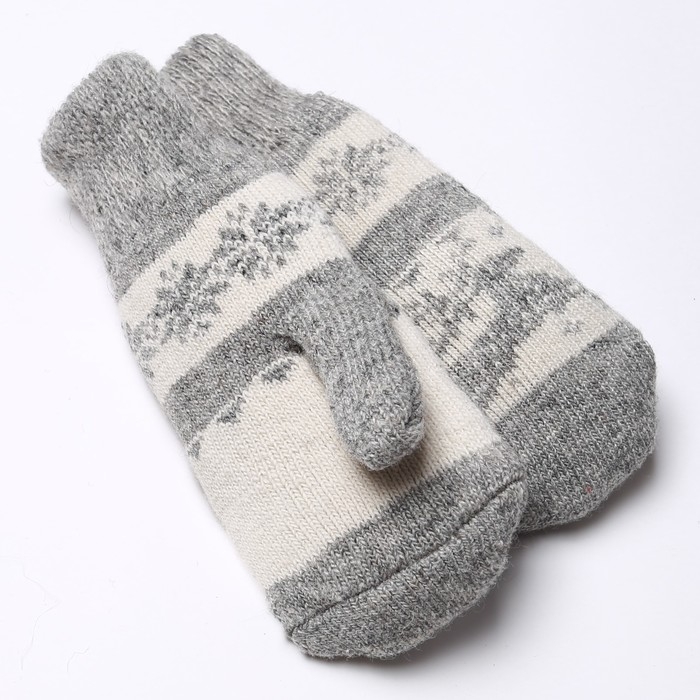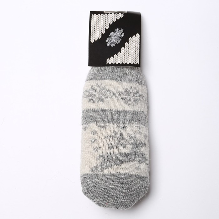 Новый год. Варежки женские шерстяные «Олень со снежинкой», цвет светло-серый/белый, размер 20-22