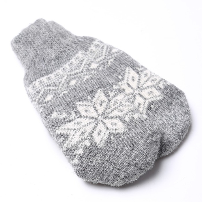 Новый год. Варежки женские шерстяные «Снежинка», цвет светло-серый, размер 20-22