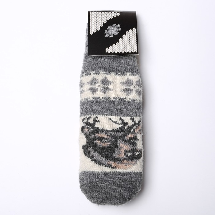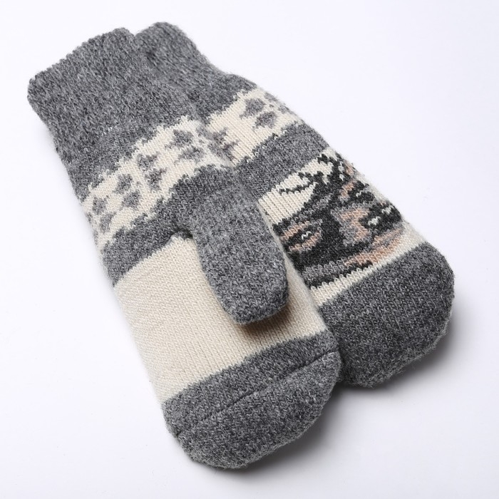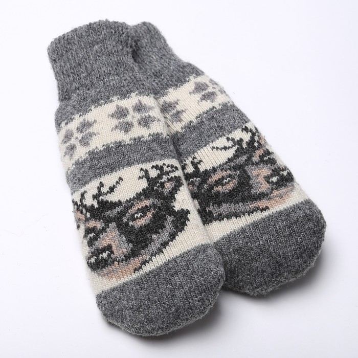 Новый год. Варежки женские шерстяные «Олень», цвет серый, размер 20-22