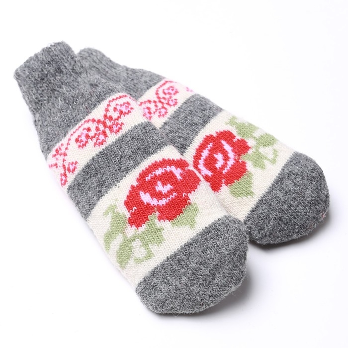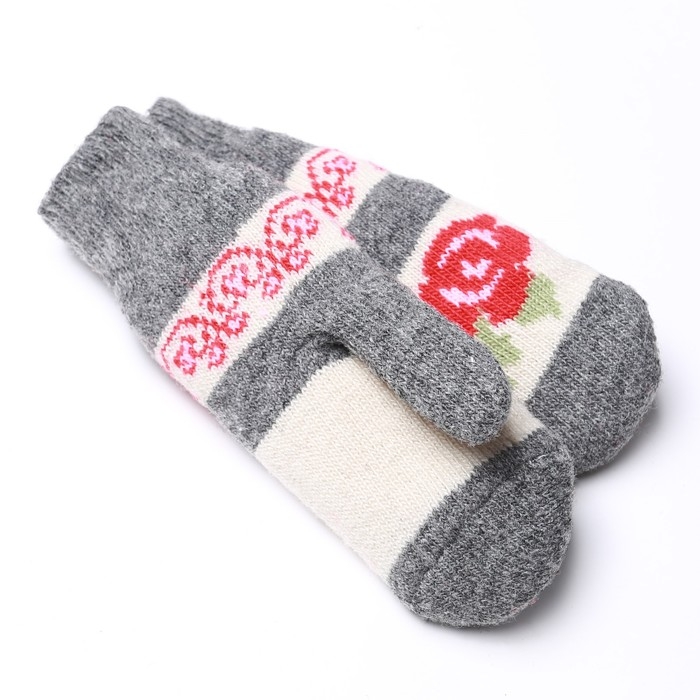 Варежки женские шерстяные, цвет серый, размер 20-22