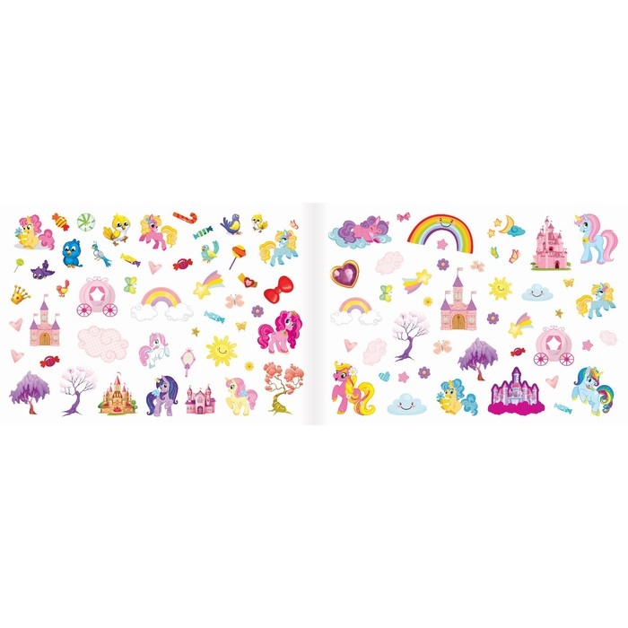 С альбомом интерактивных наклеек «Для девочек» познавать окружающий мир будет легко и интересно. Малышка подружится с весёлыми пони и другими волшебными существами.