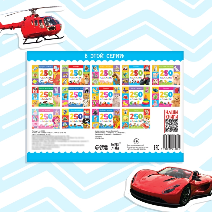 В альбоме представлено 250 наклеек с красочными изображениями разного вида транспорта. Яркие картинки положительно влияют на визуальное восприятие малыша, память и воображение.