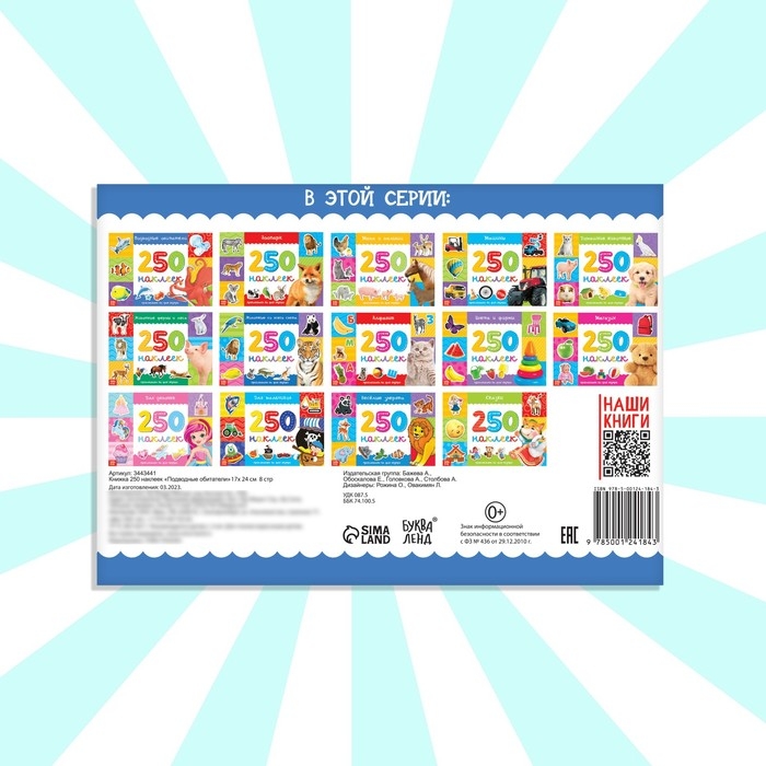 250 наклеек «Подводные обитатели», 8 стр.