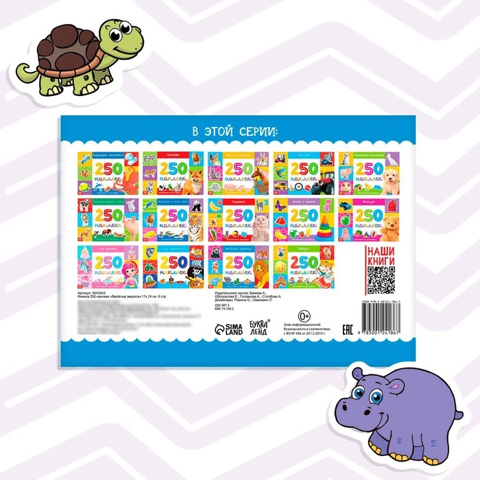 В альбоме представлено 250 наклеек с красочными изображениями животных, птиц, насекомых. Яркие картинки положительно влияют на визуальное восприятие малыша, память и воображение.