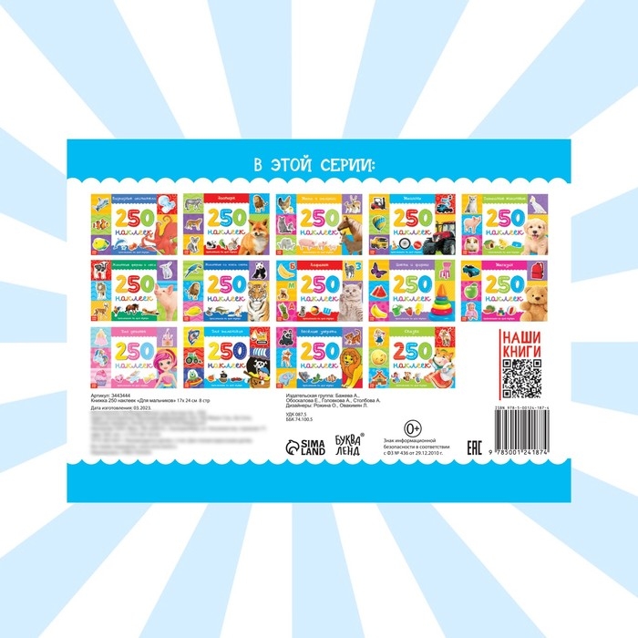 В альбоме представлено 250 стикеров с красочными изображениями. Яркие картинки положительно влияют на визуальное восприятие малыша, память и воображение.