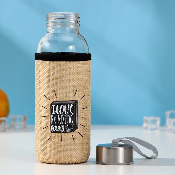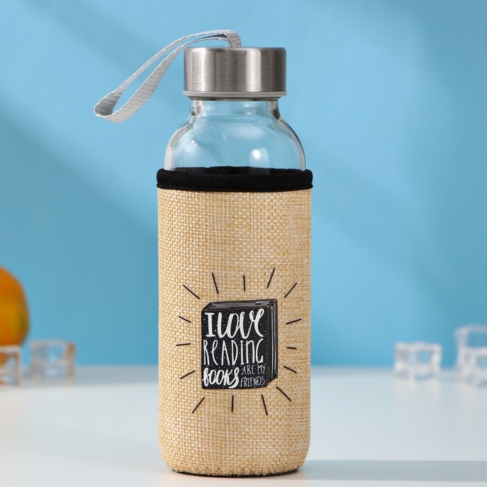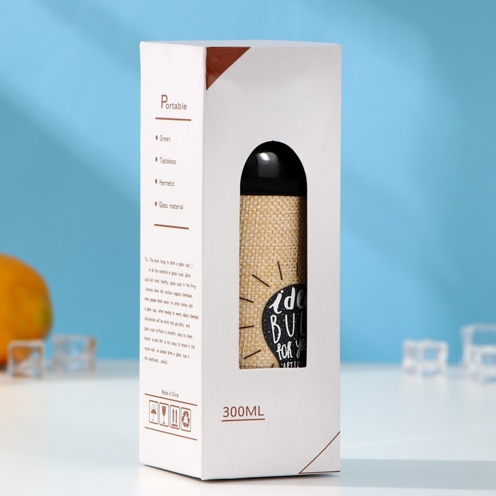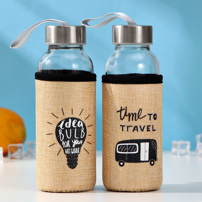 Бутылка для воды стеклянная в чехле «Идея», 300 мл, h=17,5 см, рисунок МИКС