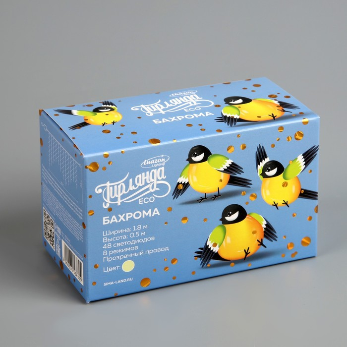 Гирлянда «Бахрома» 1.8 × 0.5 м, IP20, прозрачная нить, 48 LED, свечение тёплое белое, 8 режимов, 220 В