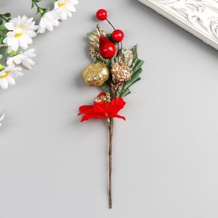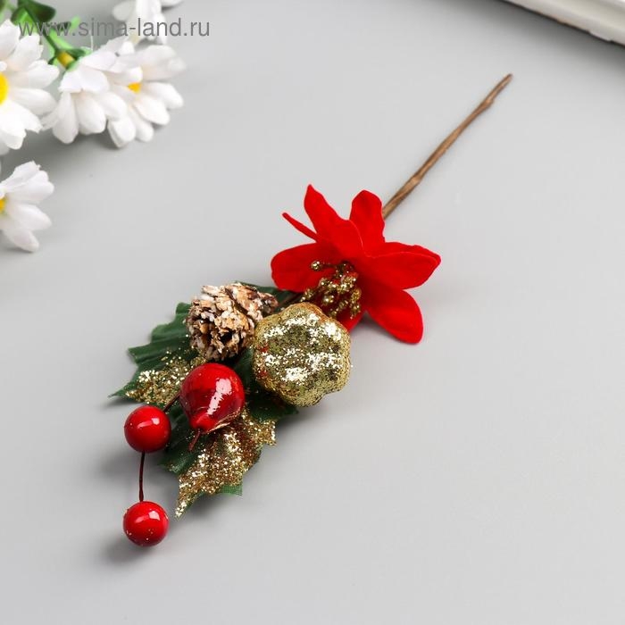 Декор для творчества "Красный цветок, земляника и шишечка" 18 см