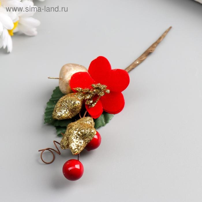 Декор для творчества "Букетик с красным цветком, звездой и яблочком" 11,5 см