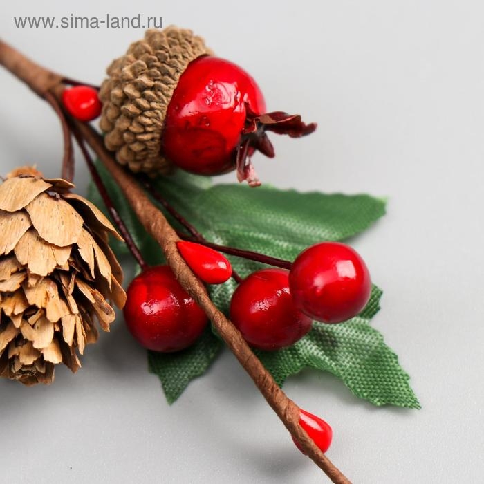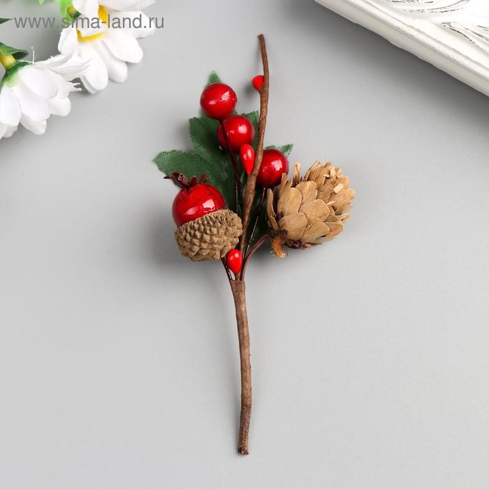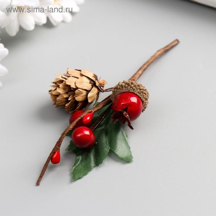 Декор для творчества "Веточка с шишкой, 3-мя ягодками и жёлудем" 8,5 см