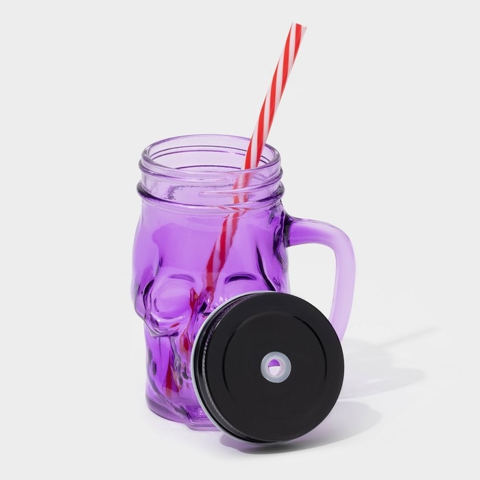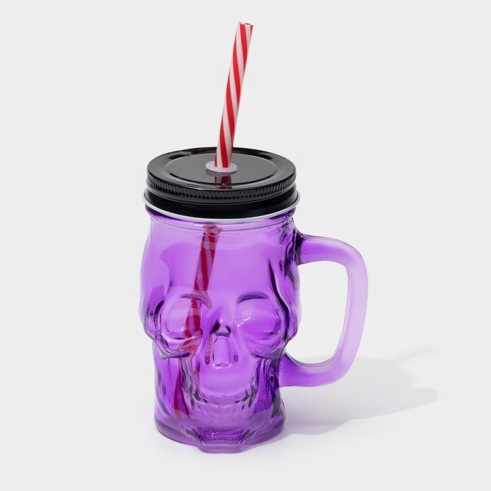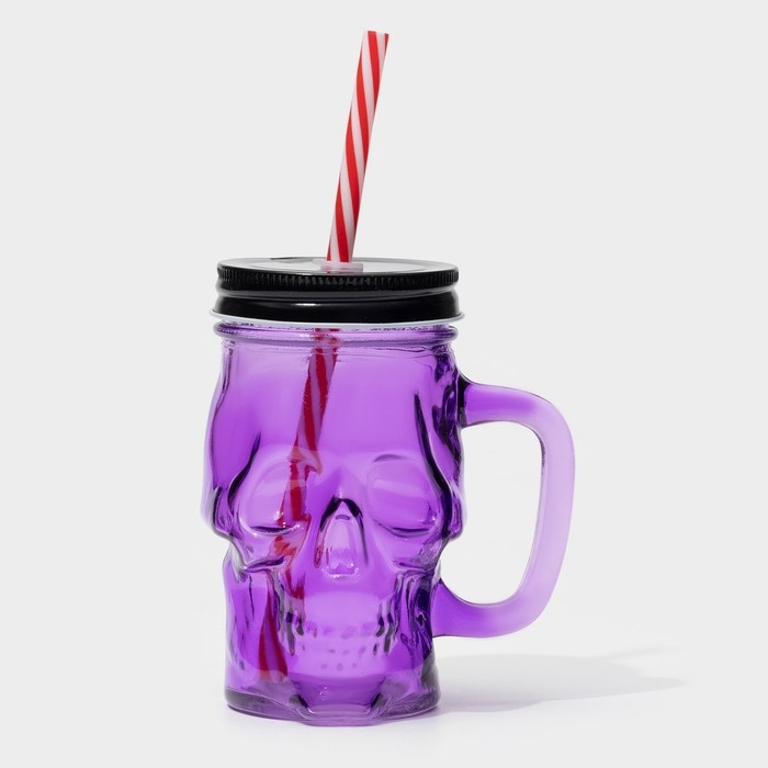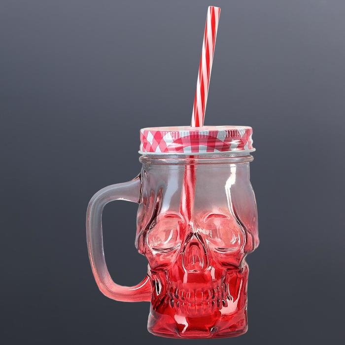 Банка стеклянная с крышкой и трубочкой «Череп. Хэллоуин», 400 мл, 11×8,5×13 см, цвет МИКС