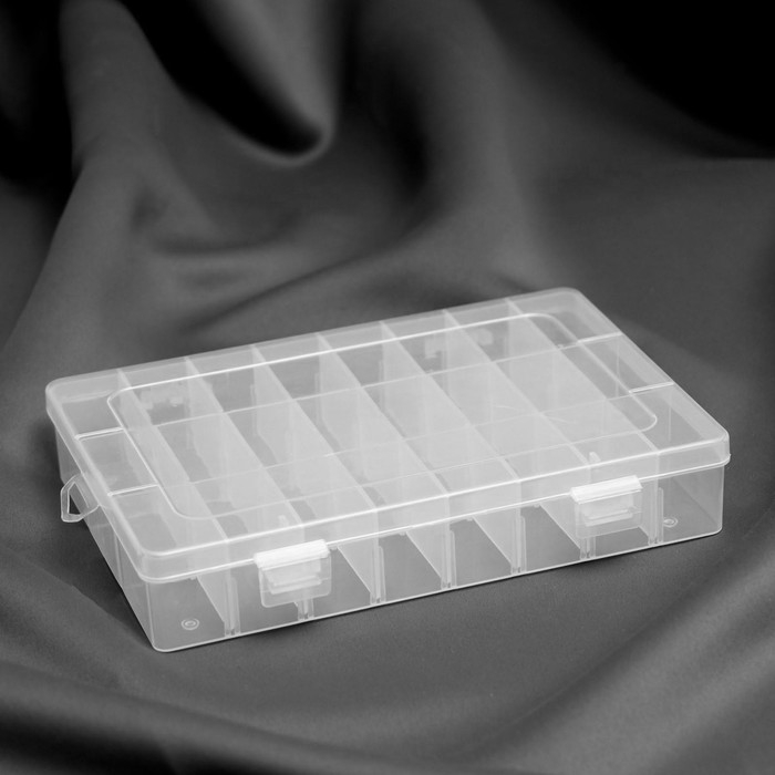 Органайзер для рукоделия, со съёмными ячейками, 24 отделения, 19,5 × 13,5 × 3,5 см, цвет прозрачный