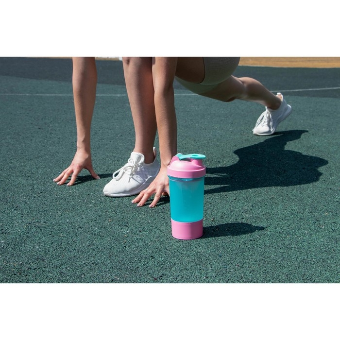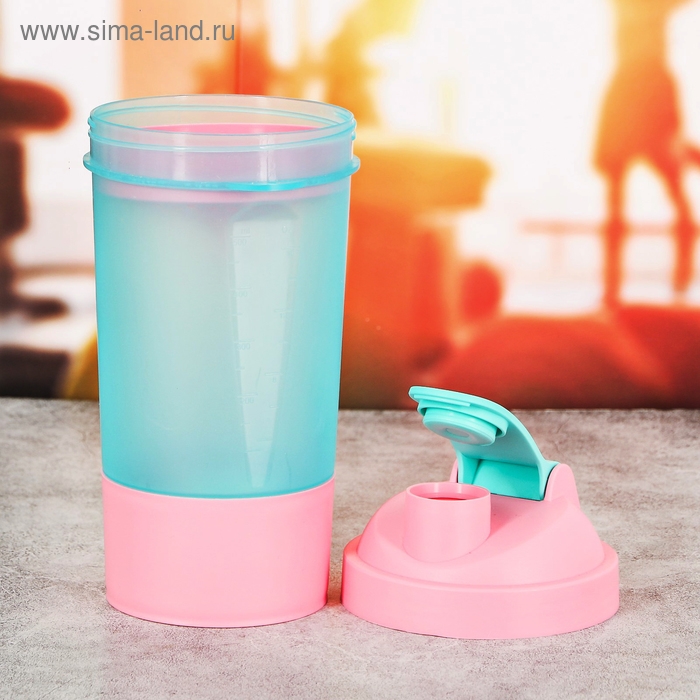 Шейкер спортивный с чашей под протеин, голубо-розовый, 500 мл
