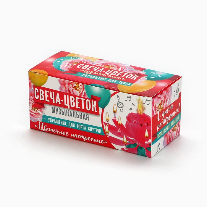 Больше всех именинный торт любят дети: ждут с нетерпением дня рождения, чтобы загадать заветное желание, задуть свечи и ожидать его исполнения. Подарите ребенку незабываемый вечер, украсьте торт к его именинам необычным музыкальным цветком.Используя специальную палочку (входит в комплект), зажгите свечу-бенгальский огонь. Пока горит бенгальская свеча - бутон цветка раскрывает свои лепестки - на каждом из которых зажигается маленькая свечка - цветок начинает играть музыку "с днем рожденья" (при этом цветок не крутится).Цветок изготовлен из специальной пищевой пластмассы, фонтан фейерверка представляет собой холодный пиротехнический огонь, как у бенгальских свечей.Принцип действия: при поджигании сгорает изоляция на проволоке, вследствие чего цепь замыкается. Для остановки мелодии разъедините проволоку. Итог:смотрится эффектно, красиво, необычно.