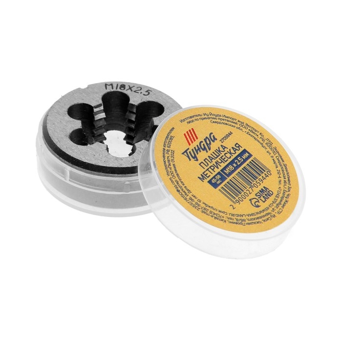 Плашка метрическая ТУНДРА, М18 х 2.5 мм