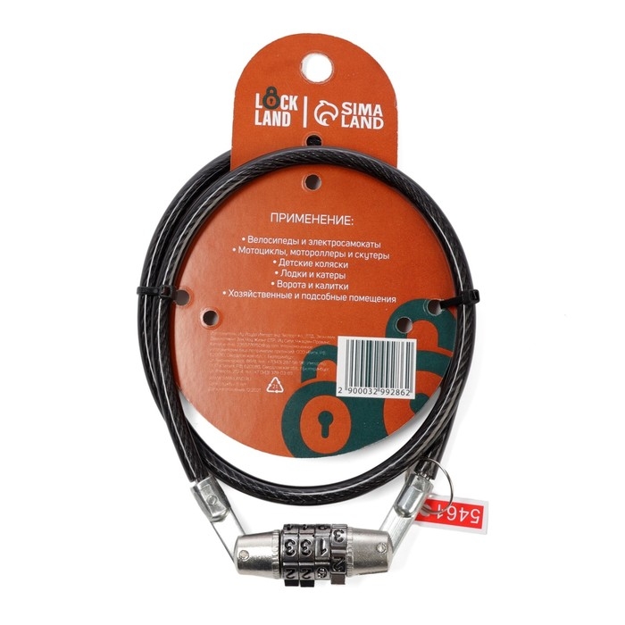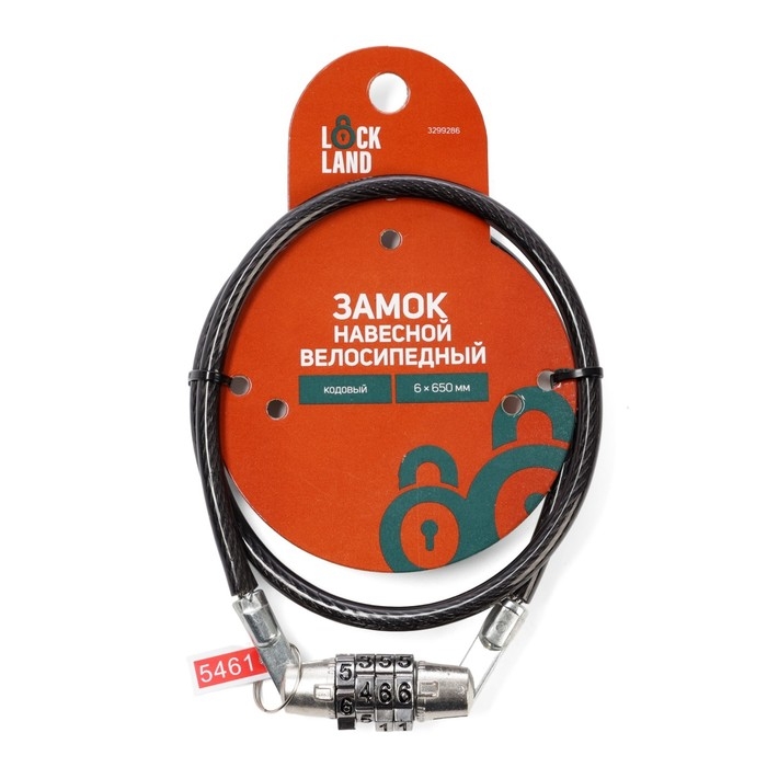 Замок навесной велосипедный LOCKLAND, кодовый, 6х650 мм